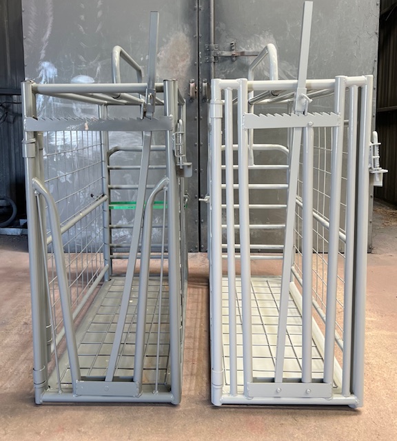 New head gate catch system pictured on the left. All chutes now have this improvement for a larger head catching area.